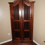 Carved wood china cabinet w/ 2 glass doors & 2 drawers