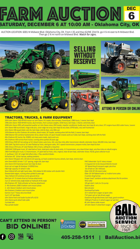 FARM EQUIPMENT ESTATE AUCTION - OKC - LIVE WITH ONLINE BIDDING