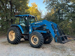 New Holland 7740 cab tractor MFWD w/ Woods 255 quick attach front end loader, SLE cab, hour meter